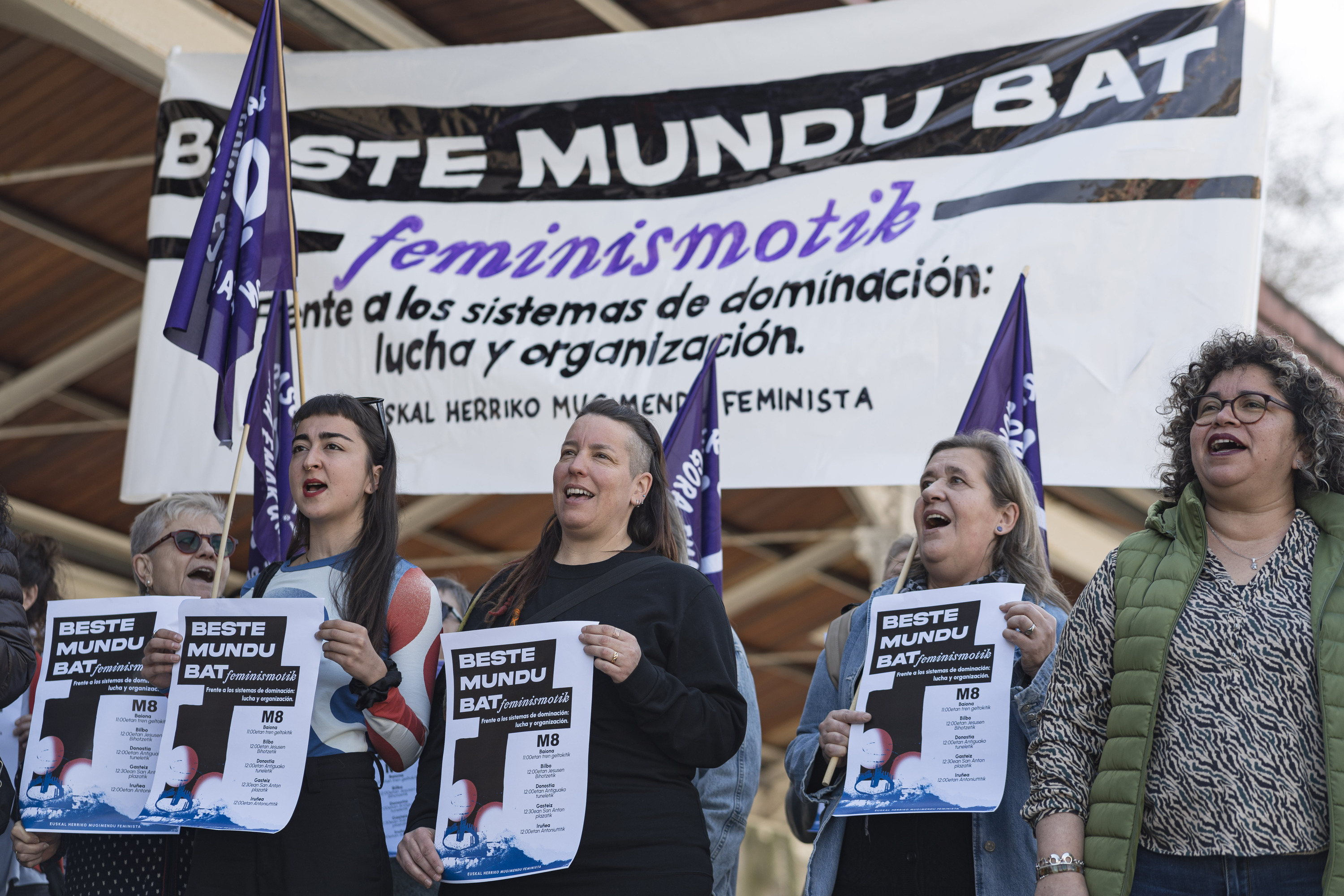 Ate joka dabil Martxoaren 8a. Eta, urtero lez, Euskal Herriko Mugimendu Feministak kalera ateratzeko deia egin die emakumeei, transei eta lesbianei, Beste mundu bat feminismotik leloaren pean. Elene Lopetegik eta Mariana Urcuyok kolektibo feministen izenean irakurri duten adierazpenean ohartarazi dute «noraeza, etsipena eta beldurra» gailentzen ari direla. Hori ikusirik, nabarmendu dute ez direla «isilik» eta «otzan» geratuko, eta sistema kapitalista zisheteropatriarkal, kolonial eta arrazistari aurre egingo diotela. Aurten M-8a igandez izango dela eta, Euskal Herriko hiriburuetan goizerako antolatu dituzte manifestazioak, baina gainerako herrietan egingo diren mobilizazioetan parte hartzeko deia ere egin dute.