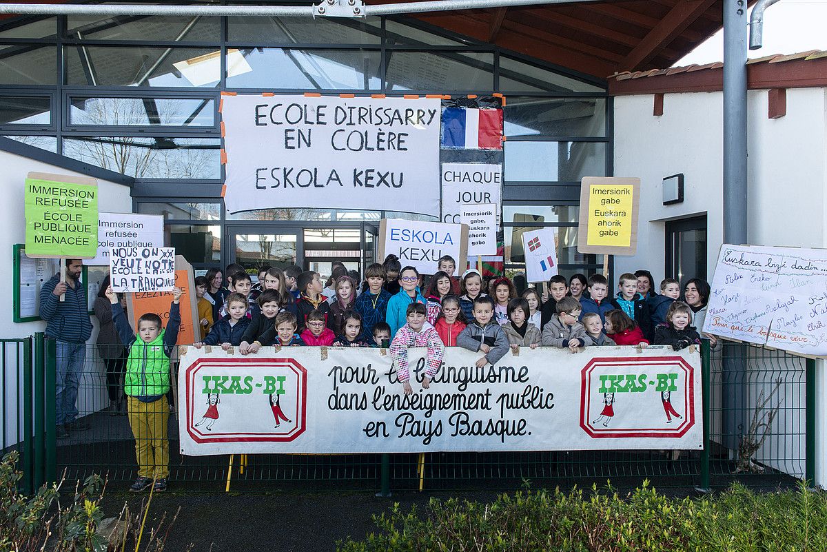 Protesta Irisarrin, eskola publikoan euskaraz aritzearen alde, martxoaren 20an. GUILLAUME FAUVEAU.