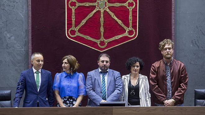 Nafarroako Parlamentuko Mahaia, ezkerretik, Juan Luis Sanchez de Muniain, Yolanda Ibañez, Unai Hualde, Inmaculada Jurio eta Maiorga Ramirez. IñIGO URIZ, FOKU