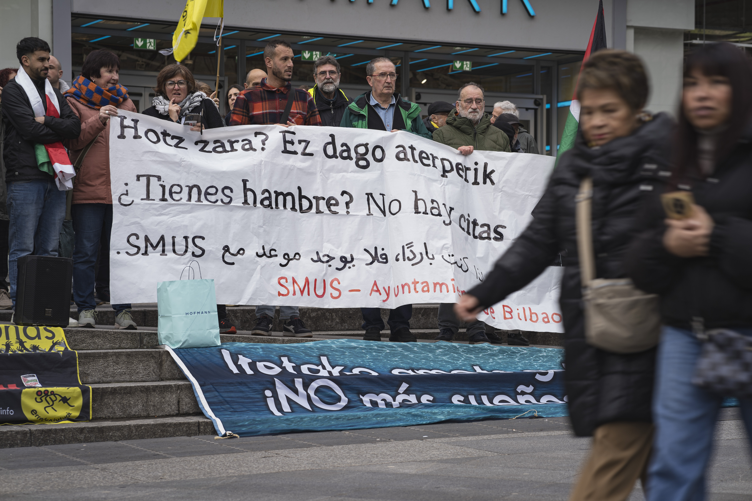 Gogoratu zuten Araba, Bizkaia eta Gipuzkoa oro har hartuta 1.500 pertsona baino gehiago daudela etxerik gabe, eta bertze 2.700 gaueko aterpetxeetan; hamarretik zortzi atzerritarrak dira. Hala, Bilboko SMUS zerbitzuak egoera hori jada larrialditzat ez hartzea kritikatu zuen plataformak. Izan ere, aldaketa horren ondorioz, herritarrek gutxienez hiru hilabete itxaron behar izaten dute jantoki txartel bat lortzeko, eta urtebete inguru aterpetxe batean lekua izateko. «Premia pertsonalei emandako arreta ez da batere hobetu, baina etxerik gabekoen kopurua lehen halako bi da», erran zuten.Â