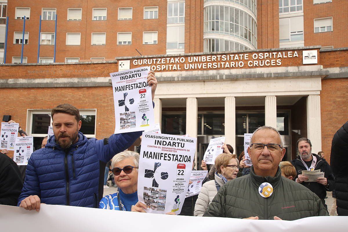 Osasun Publikoa Aurrera herri plataformak agerraldia egin du gaur, Gurutzetako Ospitalean. OSKAR MATXIN EDESA / FOKU