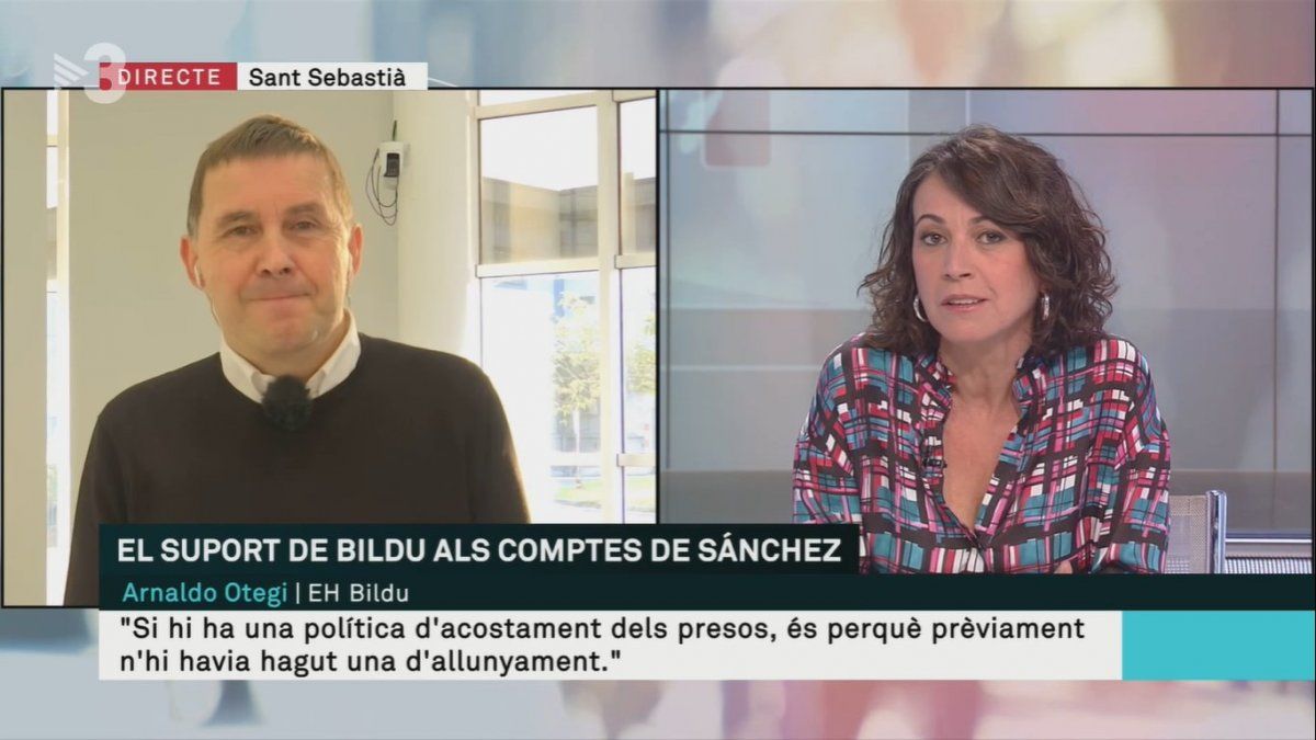 Kataluniako TV3 telebista kateak Arnaldo Otegi EH Bilduko koordinatzaile nagusia elkarrizketatu du gaur goizean, Espainiako aurrekontuei buruz. Otegiren ustez, eskuinari eta eskuin muturrari bidea ixteko aukera bat da aurrekontuei baiezkoa ematea, eta «aukera leiho bat» zabalduko du aurrekontuak aurrera ateratzeak, besteak beste «jendearen arazoei aurre egiteko», «preso politikoei» legezkotasuna aplikatzeko eta «lurralde ereduari buruzo eztabaidarako»: «Espazio horien gainean eraiki behar dira aurrekontu hauek». Otegik adierazi du Espainiako Bigarren Errepublikaz geroztik ez zela izan horrelako gobernurik Espainiako Estatuan.