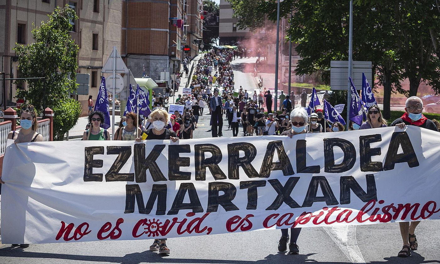 Pandemiak Ezkerraldearen egoera okertu duela salatu zuten manifestatzaileek, baina arazoa aurretik datorrela zehaztu zuten. «Berriro diogu: COVID-19ak ez du krisia sortu, arazoa kapitalismoa da. COVID-19ak are ageriago utzi du ez duela funtzionatzen gehiengo baten aurka gutxiengo baten irabaziei lehentasuna ematen dien sistema batek».
