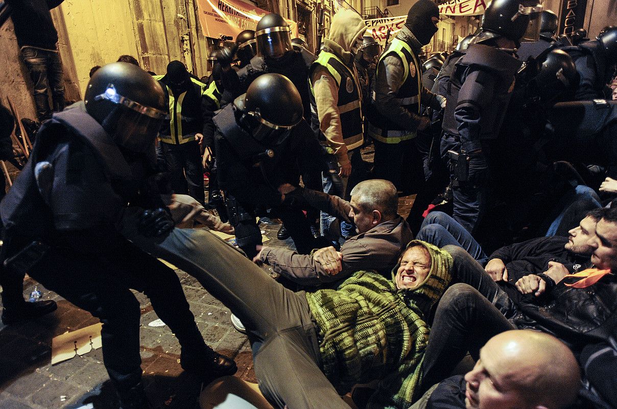 Hamaika orduko bakea hamaika minutu inguruko indarkeriarekin amaitu zen. Igandeko 14:30etik hamaika orduz giro alaitsuan zutik iraun zuen Iruñeko herri harresia hautsi egin zen 01:25ean: bortizki eraitsi zuen harresia gauez Espainiako Poliziak. Hamaika orduz Nabarreria auzoan babesa eta elkartasuna jaso zituen Luis Goñik, eta handik arrastaka eta kolpeka atera zuten aurpegia estalita eta istiluen aurkako janzkerak zein armak soinean zeramatzaten poliziek; lehenago, Goñiren aurrean ziren gazteen aurka jo zuten basakeriaz eta banan-banan, inongo begirunerik gabe. Hala, indarkeriarik gabeko erresistentzia aktiboaren hormari euren indarrarekin oldartu zitzaizkien segurtasun indarrak, eta hainbat lagun zaurituzituzten. Luis Goñi bera barne. Irudiek erakusten dutenez, ahoa odoletan zuen handik atera zutenean.