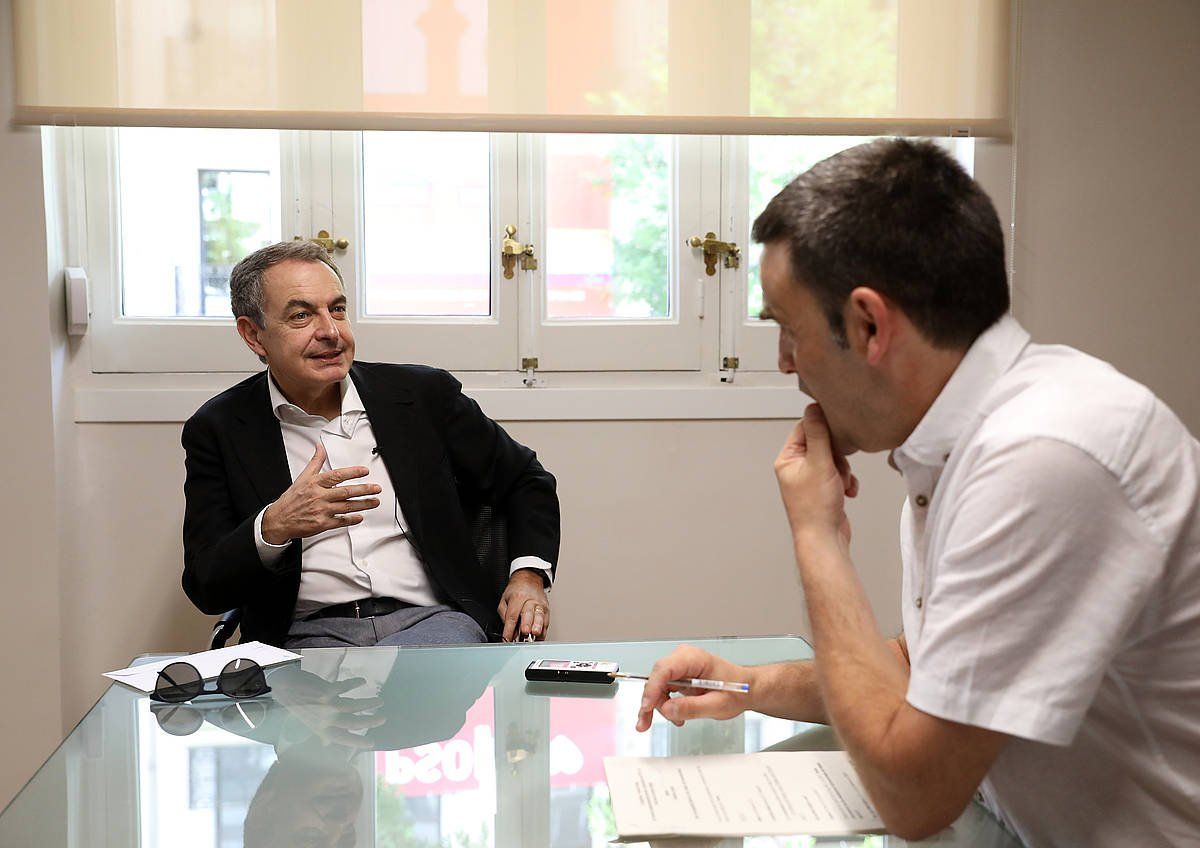 Jose Luis Rodriguez Zapatero eta Enekoitz Esnaola, pasa den asteartean, Madrilen, elkarrizketan. J. DANAE, FOKU
