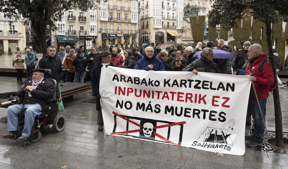 Gasteizko protestan bildutakoek heriotzen gainean administrazioek duten «inpunitatea» salatu dute, eta presoentzako osasun arta egokia aldarrikatu. Hain justu ere, osasun mentaleko arazoak eta adikzioak dituztenen hainbat familia biltzen dituen Katearen Loturak elkarteak bat egin du bilkurarekin, eta, haren izenean, Regina Eriz presidenteak ohartarazi du espetxeetan patologia duala duten presoek ez dutela behar bezalako arreta jasotzen.