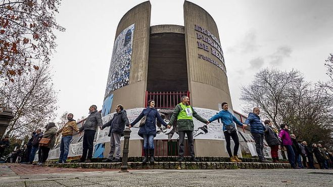 Giza katea osatuz inguratu dute Gasteizko San Frantzisko eliza. Ekintza horren bidez, hiriko apezpikutzari eskatu diote eliza "memoriari eta giza eskubideei eskainitako zentro" bihurtzeko.