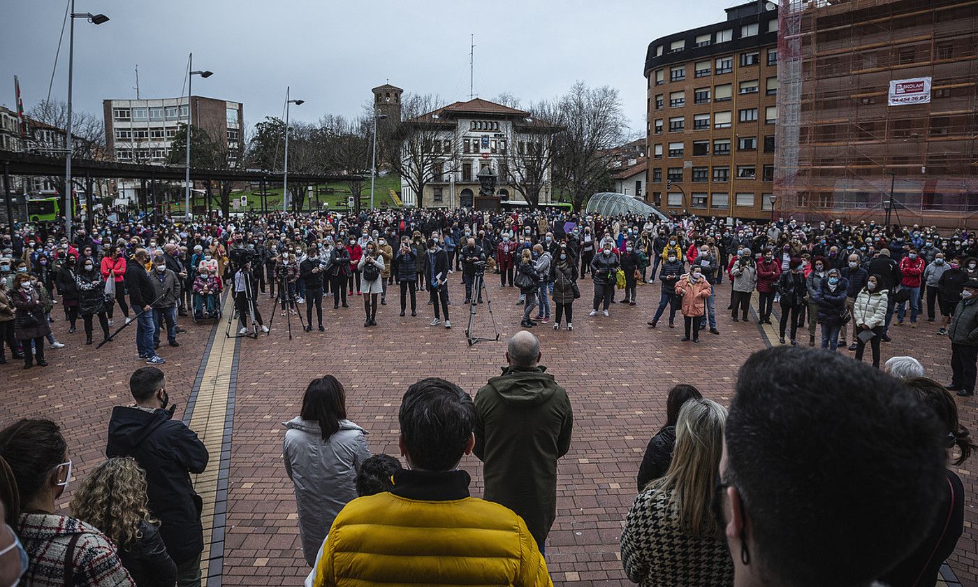 Ehunka herritar elkartu ziren atzo Sestaoko Kasko plazan, Bizkaian, ostiralean gertatutako hilketa matxista arbuiatzeko. Hamabost minutuko elkarretaratze isila egin zuten, eta bertara joandako txaloek eten zuten isiltasun hori. 56 urteko emakumea zen Conchi Gonzalez, eta Ertzaintzaren hipotesi nagusia da hilketa matxista bat izan dela. Izan ere, Jaurlaritzako Segurtasun Sailak jakinarazi zuenez, 57 urteko gizonezko baten gorpua aurkitu zuten atzo goizaldean Bilboko itsasadarrean, Sestao parean, eta familiari haren heriotzaren berri ematera joan zirenean aurkitu zuten andrearen gorpua etxean, indarkeria zantzuak zituela. Bortizkeria matxistaren ondorioz 2003. urtetik hildako 109. emakumea da.