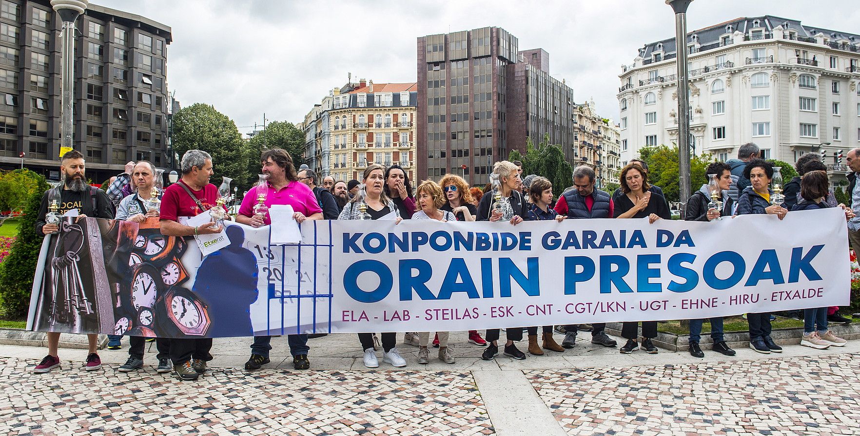 Hilero bezala, sindikatuek elkarretaratzea egin dute Espainiako Gobernuak Bilbon duen ordezkaritzaren egoitzaren aurrean, Konponbide garaia da, orain presoak lelopean. Joan den urtarriletik ari dira sindikatuak —ELA, LAB, UGT, ESK, Steilas, CGT/LKN, CNT, EHNE, HIRU eta Etxalde—mobilizazio horiek egiten, «preso dauden pertsonen arazoa konpontzeko» ekarpen gisa. Hil honetako elkarretaratzean Etxerat eta Sare elkarteetako ordezkariak ere egon dira, eta goraipatu egin dute sindikatuen jarrera «eredugarria» eta «giza eskubideen arloko eskakizun baten inguruan» ados jarri izana.