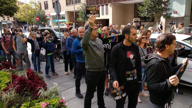 Sare sozialetan egin dute deialdia, eguerdiko hamabietarako UGTk Iruñean duen egoitzaren aurrean. Izan ere, sindikatuko idazkari Jesus Elizaldek azkenaldian adierazitakoak hautsak harrotu ditu. Euskaraz bizi nahi dut afixak eskuetan dituztela sindikatuak agertutako jarrera salatu dute bertan bildutakoek, "UGT euskararen etsaia" eta "euskara nafar hizkuntza da" oihukatuz.