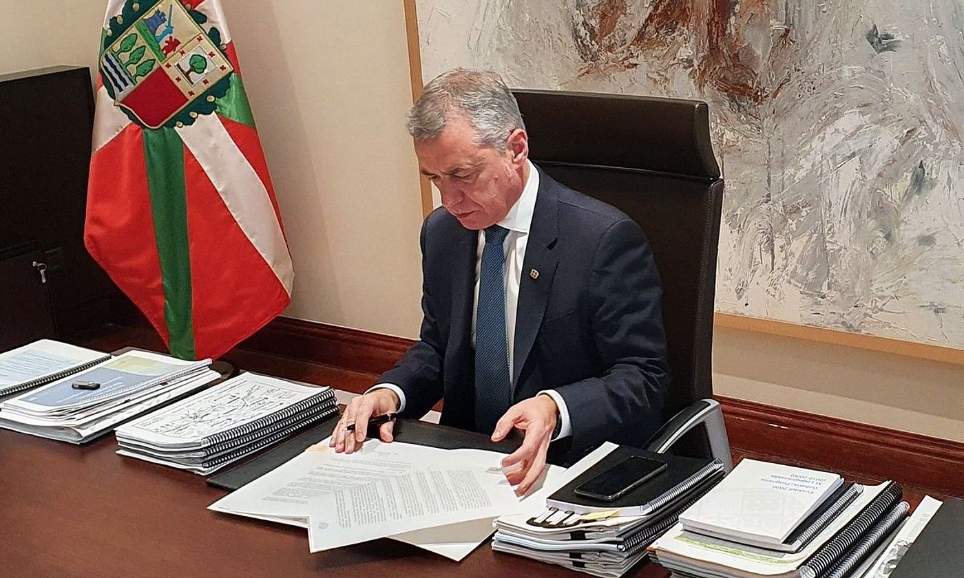 GASTEIZ. Iñigo Urkullu Eusko Jaurlaritzako lehendakariak atzo sinatu zuen Eusko Legebiltzarrerako apirilaren 5eko hauteskundeak indargabetzeko dekretua, eta gaur argitaratuko dute Euskal Herriko Agintaritzaren Aldizkarian. Dekretua legebiltzarreko Diputazio Iraunkorrari jakinaraziko dio, halaber. Herenegun, Lehendakaritzan egindako bilera batean, Urkulluk eta talde politikoetako ordezkariek bozak atzeratzeko erabakia hartu zuten, aho batez, koronabirusaren krisia dela-eta iritzita ez dagoela botoa emateko nahikoa bermerik osasun eta sufragiorako eskubide aldetik, eta arrazoi horietan oinarritu da lehendakaria dekretuan. Formula juridikoari buruz, dekretuak dio bozen deialdi bat utzi daitekeela indarrik gabe baldintza horiek daudenean, baina aitortu du badela lege hutsune bat.