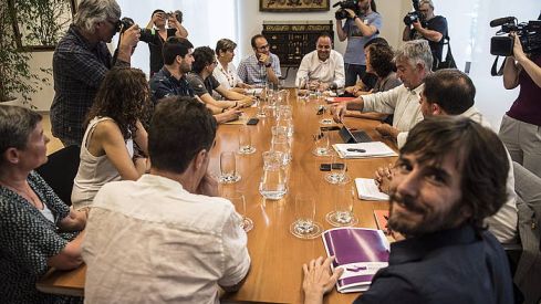 Ez dute baztertzen sanferminetan ere biltzea. Astelehenean PSNk gainerako hiru alderdiei helarazitako dokumentua lanerako "oinarrizko tresna" dela hitzartu dute gaur arratsaldean lau alderdiek. Geroa Baik,Ezkerrak eta Ahal Dugu-k egindako ekarpenak jasoko dira eta horren gainean lan egingo dute astelehenetik aurrera. Bihar batzorde horietan nortzuk parte hartuko duten zehaztuko dute.