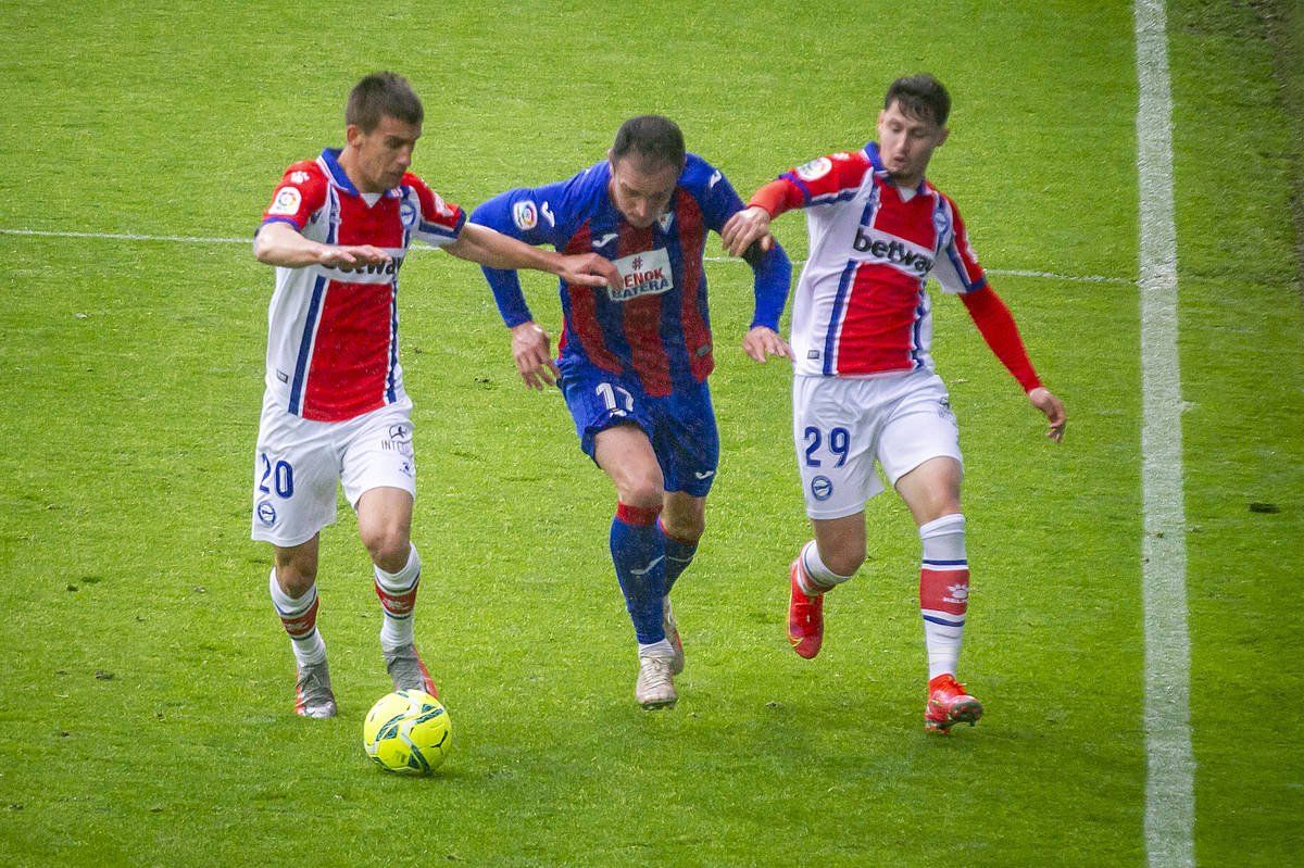 Egoerak hala behartuta, gogor ekin dio Eibarrek lehiari. Lehen zatian, partidaren jaun eta jabe izan dira gipuzkoarrak. Aurreneko minutuetatik armaginek hain berea duten jokoa egitea lortu dute: goian presionatu, aurkariaren atetik gertu lapurtu, eta area erdiraketaz josi. Jose Luis Mendilibarrek aise irabazi dio arbeleko lehia Javi Callejari. Arabako taldea lo zelairatu da, haizeak nondik jotzen zien ere ez zekiten jokalariek. Etxeko taldearen betiko jokoak ezustean harrapatu dituela ematen zuen. Eibarrek hasiera-hasieratik eraman du berdeguneko nagusitasuna markagailura. Hirugarren minuturako aurretik zen etxeko taldea. Alboko sake bat area barruan sartu, eta jokalari guztien artean Kike Garciari, nori bestela, erori zaio baloia: 1-0. Hain jardunaldi gutxiren faltan, eta gauzak nola dauden ikusita, talde askok abantaila babestea aukeratuko zuketeen, baina Mendilibarren taldea ezberdina da, eta justu kontrakoa egitea erabaki du: bigarrenaren bila joatea. Aldea bikoizteko abaguneak izan ditu. Kike Garcia, Bryan Gil eta Edu Exposito gola egitetik gertu izan dira, baina ez dute baloia Pachecoren ate barrura bidaltzea lortu. Errenta txikiegia zen zelaian ikusi zenerako.