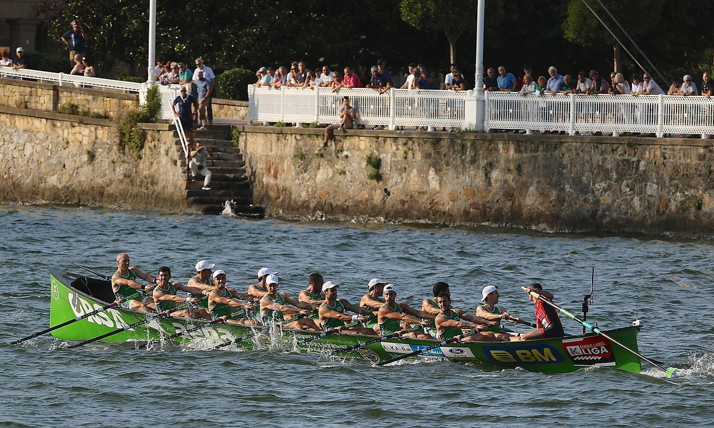 Denboraldiko lehen bandera irabazita eta liderraren maillota soinean zuela iritsi zen Hondarribia Sestaoko estropadara. Azken bi aldietan nagusi izan zen, eta bandera irabazteko aukera handiak zituen Ama Guadalupe- koa-k. Beñat Egiazuk (Hondarribia, Gipuzkoa, 1994) ondo daki sailkapeneko lehen postua lortzeak zer zailtasun dituen, baina, haren ustez, larunbatean estropada ona egin zuten. «Ez ginen gustura tokatu zitzaigun kalearekin, baina uste dut txukun aritu ginela. Agian sari gutxi jaso genuen. Azkeneko luze erditik aurrera, bi puntu joan zitzaizkigun, eta pena horrekin geratu ginen. Bermeorekin borrokan aritu ginen, baina, azkenean, Zierbenak ere aurre hartu zigun».