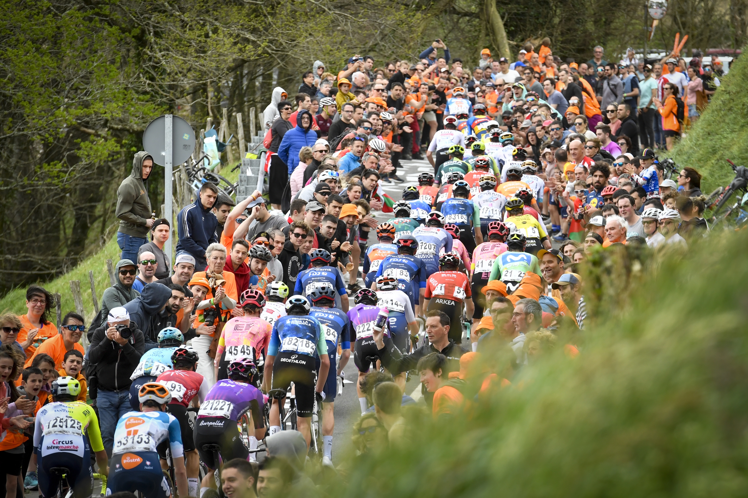 Txirrindulariak eta zaleak, Izuan, iazko Euskal Herriko Itzuliko azken etapan. GORKA RUBIO / FOKU