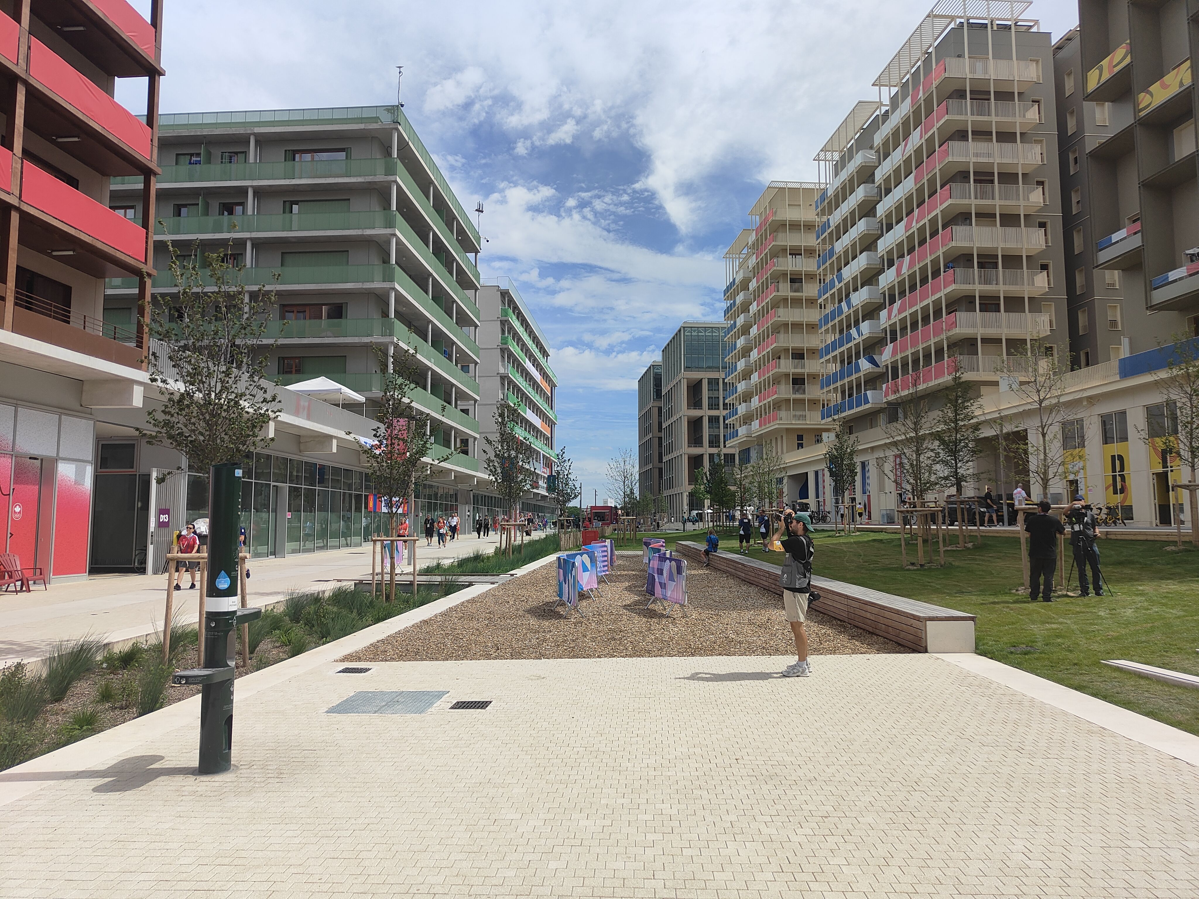 Jokoak hirian bertan egitea eta hiriaren parte izatea izan da Parisko antolakuntzaren xedeetako bat, eta olinpiar hiria garraio publikoaren bidez erdigunearekin eta bertze gune olinpikoekin lotuta egotea helburu horrekin lotu du. Metroko geltokitik atera bezain pronto sentitzen da olinpiar hiria inguruan dagoela, Jokoen kamisetak dituzten boluntarioak, akreditazioak lepotik zintzilik duen jendea eta atleta taldeak inguruan ikus baitaitezke harat-honatean oinez. Eta, noski, polizia pila bazter guzietan. Hiriaren sarreran askotariko jendea biltzen da —kazetariak eta kameralariak, kirolari ospetsuren bat ikusteko esperantzan joan diren herritarrak...—.