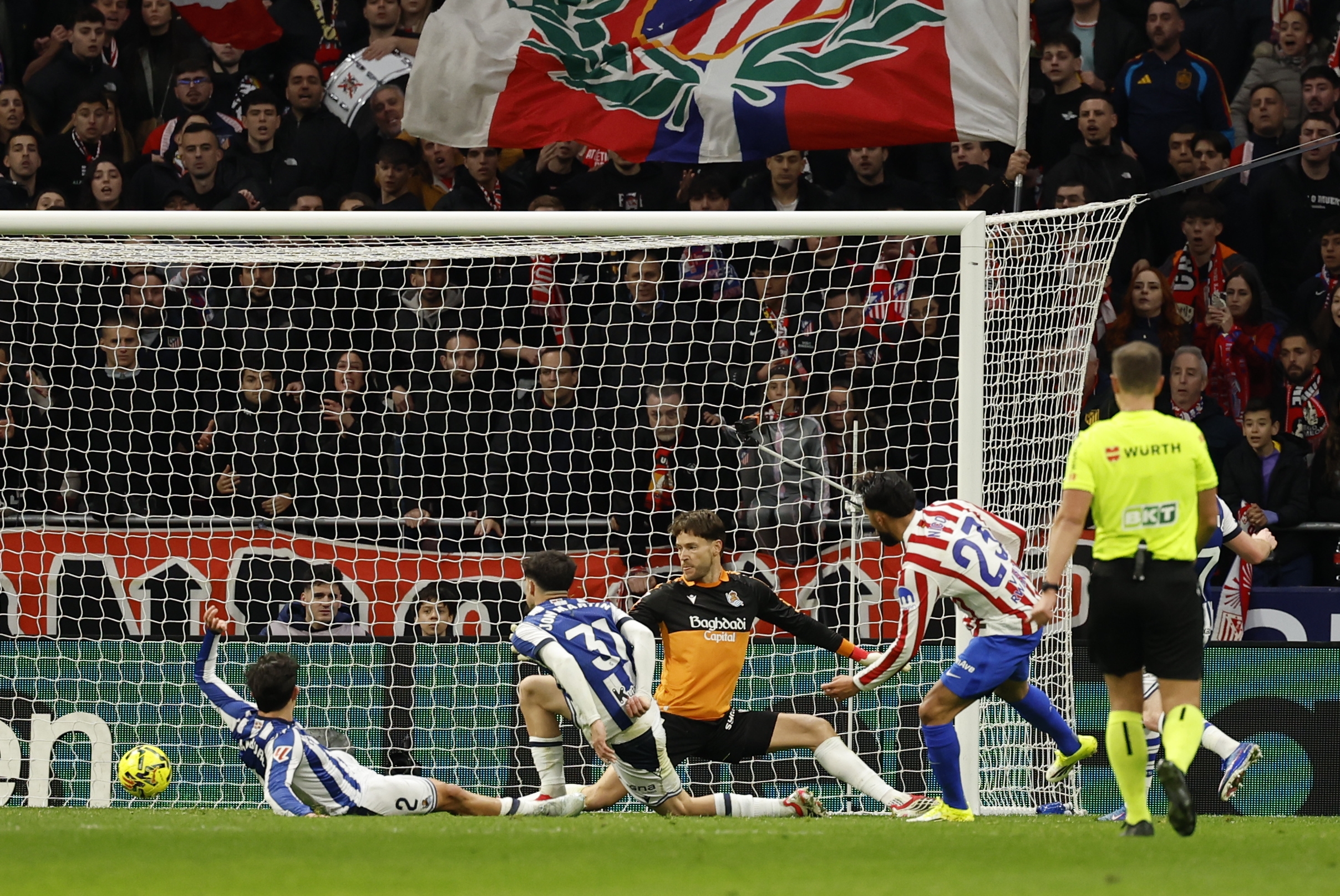 Aldaketek izan dute eragina, Atletico Madrilen batez ere. Sorloth bigarren gola sartzear izan da 62. minutuan, baina Caleta Carrek baloia gutxi baina nahikoa desbideratzea lortu du, eta langaren gainetik joan da. Eta handik gutxira beste aukera bat izan du Nicolas Gonzalezek, are garbiagoa, baina hori ere gora joan zaio, huts harrigarri batean. Baina minutu bat besterik ez du behar izan argentinarrak akatsa konpontzeko, Realeko beste jokalari ohi batek, Antoine Griezmannek, orpoz ezin hobeto utzi baitio baloia Gonzalezi, eta hark gola sartu du, 67. minutuan.