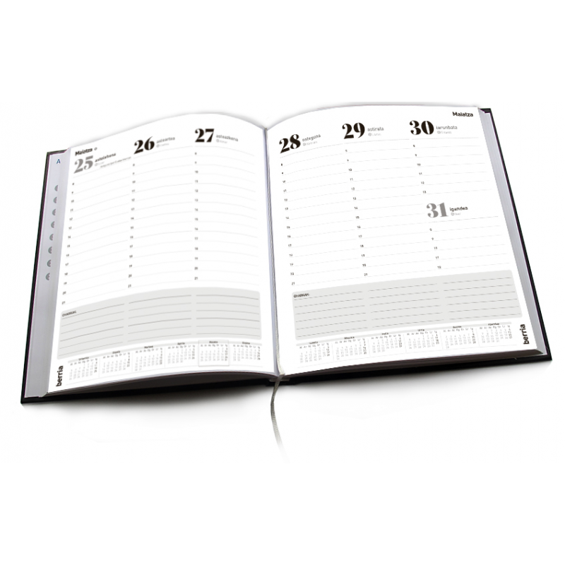 Azal mardulekoa da agenda, eta atal hauek ditu: