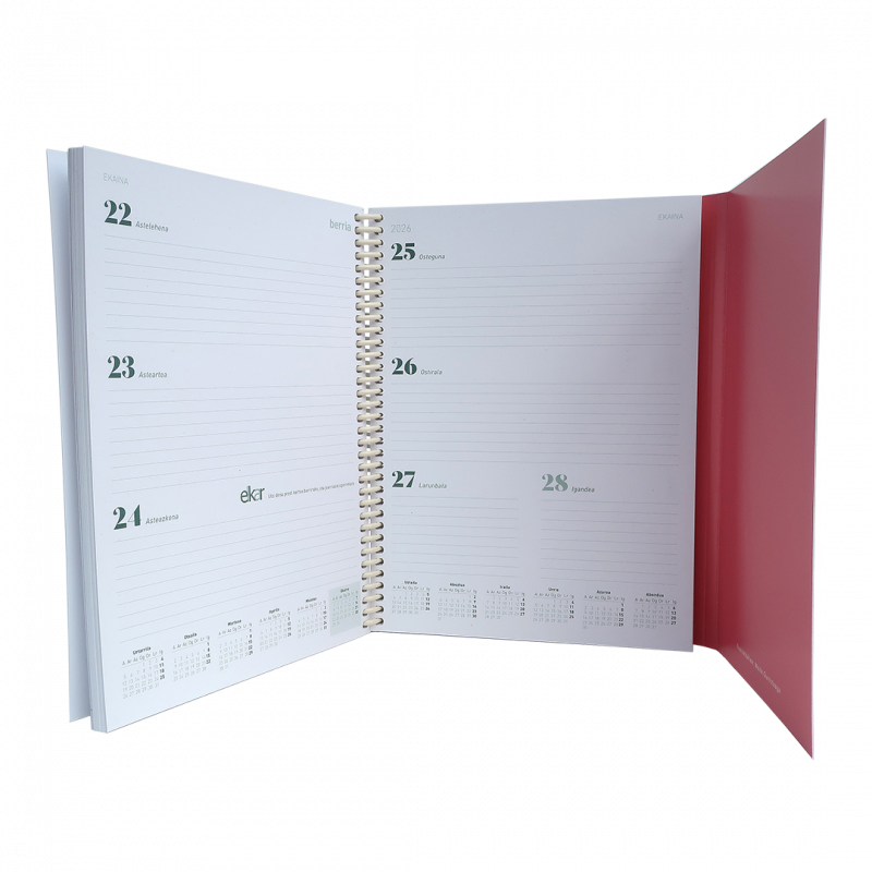 Azal mardulekoa da agenda, eta atal hauek ditu: