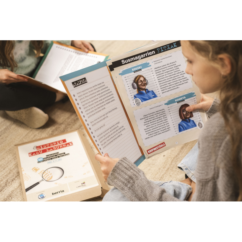Zabaldu ondo zentzumen guztiak, irakurri arretaz susmagarrien fitxak, egin loturak, eta saiatu galdera bakoitzari erantzuna topatzen.