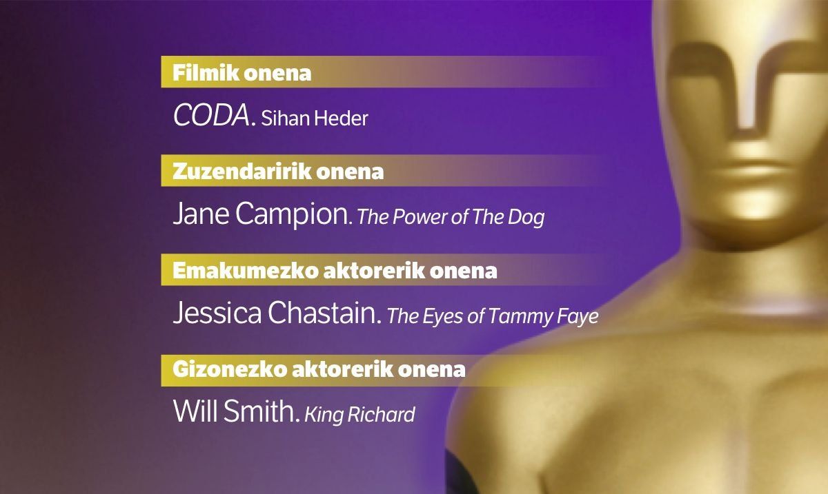 Susmatua zen Oscar sariketetako 94. aldiak sorpresak ekar zitzakeela. Nekez egin zitekeen aurreikuspen argirik; izan ere, azken hamar urteetako hautagaitza gehien ziren sari nagusia eskuratzeko lehian; hamar lan izan dira norgehiagokan. Atzerako kontua bukatuta, azkenerako jakinarazi dute zer lanek irabazi duen film hoberenaren Oscar saria: CODA-ri eman diote garaikurra. Guraso gorrak dituzten nerabe batzuen inguruko istorioa jorratzen du filmak.