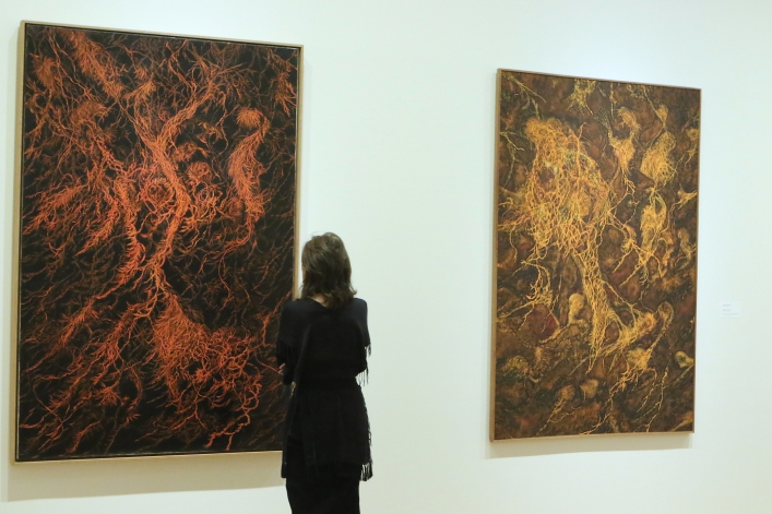 Hasierako aretoan izan ezik, edonola ere, pintura da nagusi Bilboko erakusketan. Lertxundik gogora ekarri duenez, argazkigintzaren eta landa ekintzen ostean, 1973tik aurrera, pixkanaka joan baitzen artista berriz ere pinturara gerturatzen. Eta bilakaera horren eta bertan egindako garapenaren lekukotza ere biltzen du erakusketak horregatik. Bertan dira, besteak beste, Itzal euriak izeneko margolan abstraktu ikusgarriak, bai eta Belarrak, Sustraiak zein Esmalteak margolan serieetako piezak ere. Zuri-beltzetik gertu hasieran, eta gero eta kolore gehiagorekin ondoren.