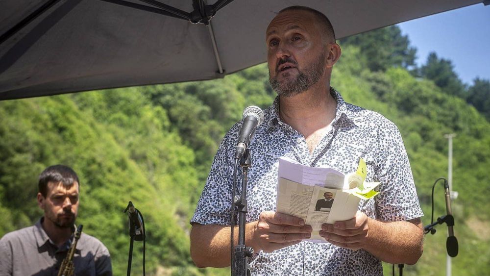 Juanjo Olasagarre 2018ko Eako Poesia Egunetan bere azken liburuko poemak irakurtzen. JAZKI FONTANEDA