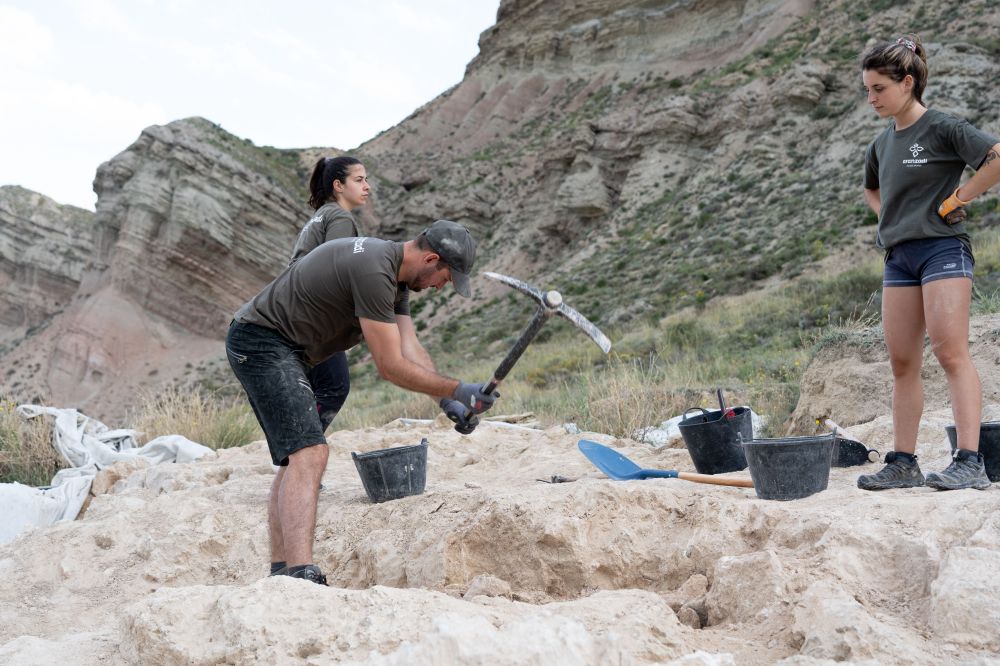 Besteak beste, bidelagunei esker ari dira indusketa eta ikerketa prozesuan pausoak eman eta eman, gainera. Aranzadikoek hasiera-hasieratik dituzte ondoan dozenaka herritar. «Lehenbiziko egunetik bertatik gara hemen», kontatu du Andosillako Maricer Itartek, pozarren. Herriko boluntario taldearen koordinatzailea da 2018az geroztik —orduan jarri zen martxan—, eta, deialdiak daudenetan, inoiz gutxi faltatzen da. Taldean berrogei bat lagun dira guztira. Beti ez dira guztiak joaten, baina sarri azaltzen dira hogei lagun inguru lanera.