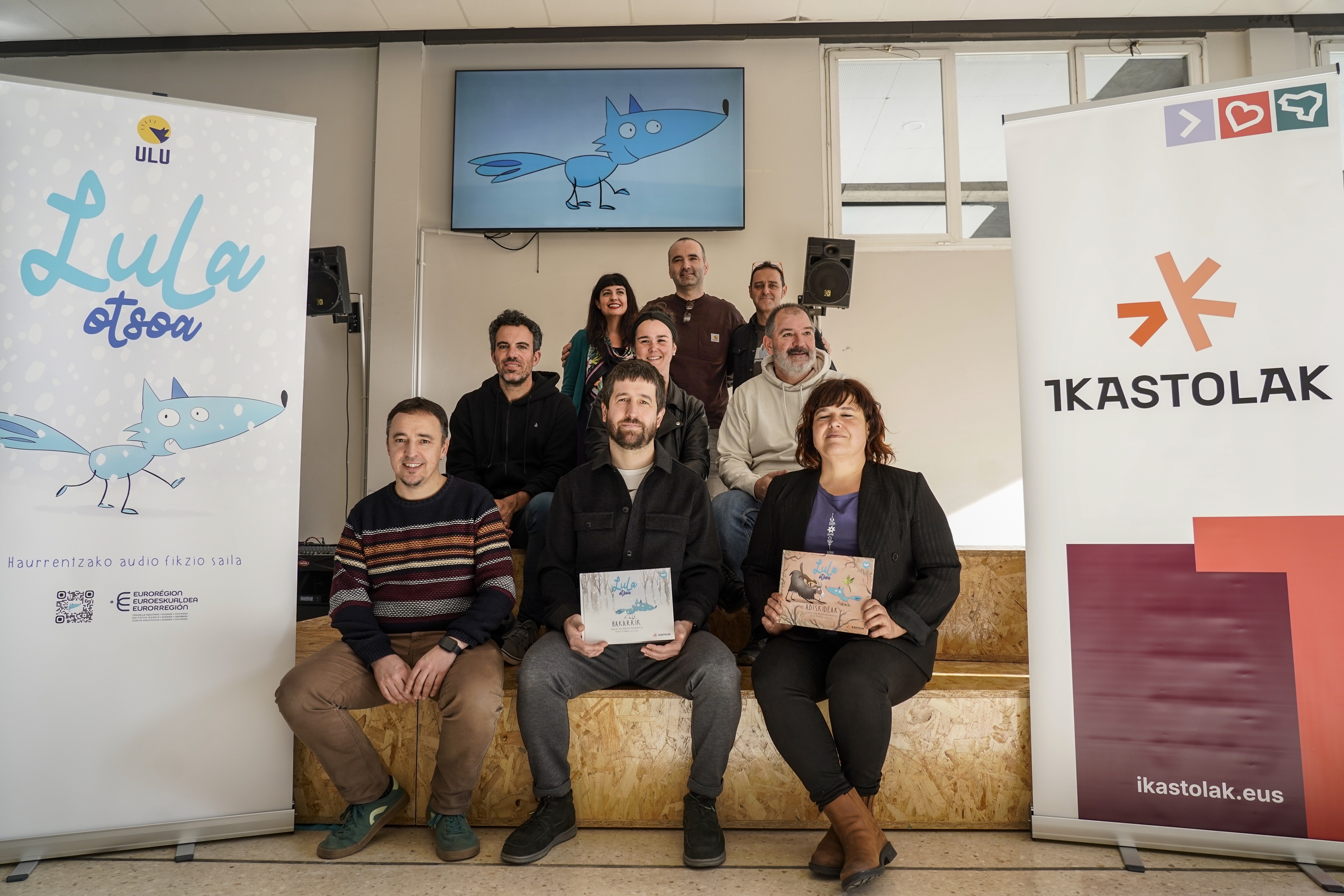 Lula Otsoa haurrentzako audio-fikzio sailaren proiektua aurkeztu zuen joan den ostegunean Ikastolen Elkarteak, eta bertan izan ziren proiektuan parte hartu duten eragileen ordezkariak: Nekane Artola Ikastolen Elkarteko lehendakaria, Marie Heguy Euroeskualdeko zuzendaria, Olatz Idoate Gure Irratiko ordezkaria, Iker Bengoetxea Sudurgorri Studioko ordezkaria, Kepa Errasti aktorea, Martin eta Xabier Etxeberria gidoilariak eta Aritz Trueba ilustratzailea.