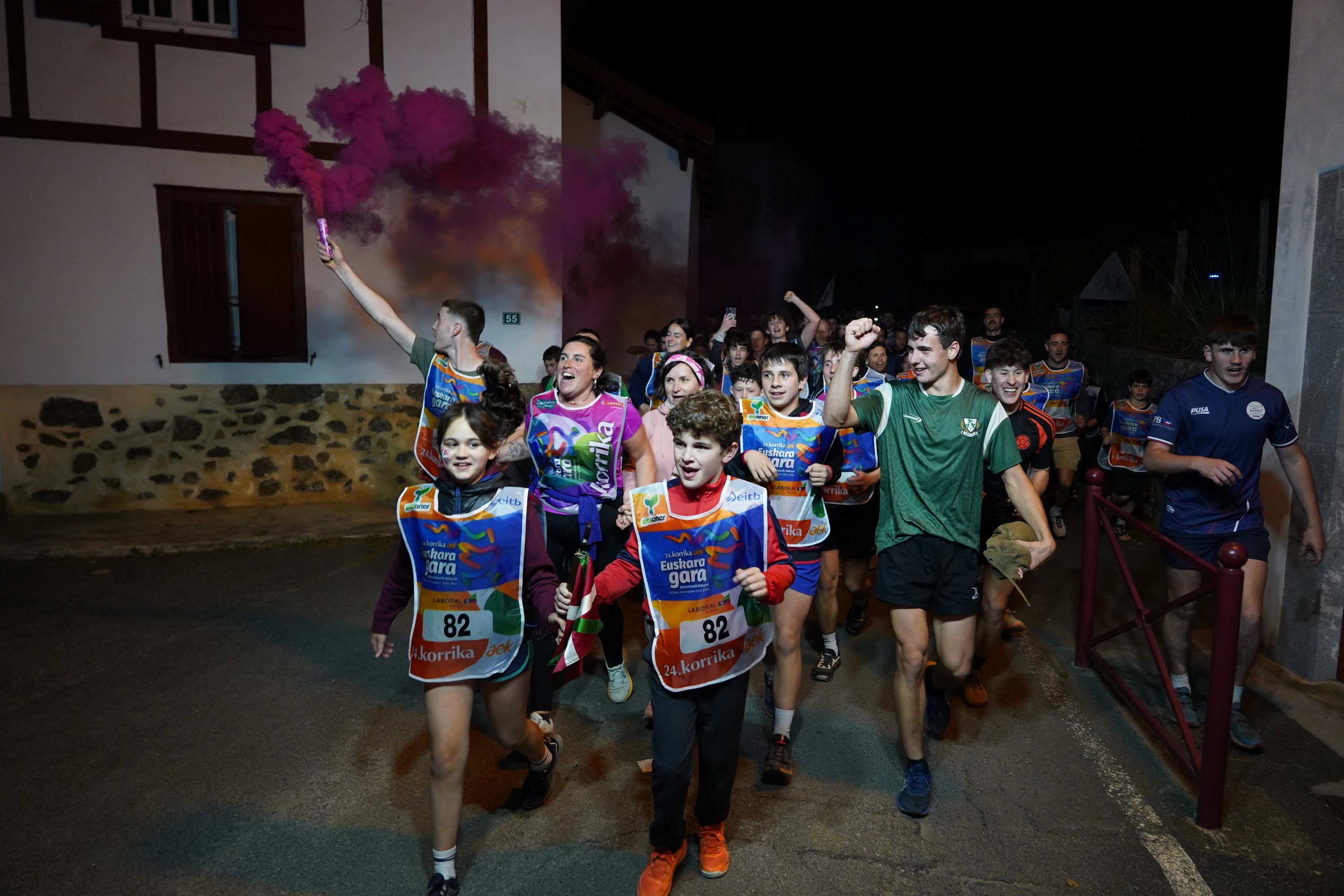 Eta, noski, aldiro-aldiro harrera beroa egin, mikrofonoa eskuan duen animatzailearen laguntzaz. Korrika 23:40an iritsi da Lekornera (Lapurdi). Bengala arrosak eta zuziak eskuan egin diote harrera. 82 zenbakia duten petoak soinean, Baigura ikastolako ikasleek hartu dute lekukoa, txandaka. Masailetan ikurrinak marraztuta batzuk, eta irribarre zabala agerian besteak: lanketa egina dago, gozatzea baino ez da falta. Igaro dira Etxebarne ostatutik ere: barruan izango dira ikastolan prestatutako mezuak.