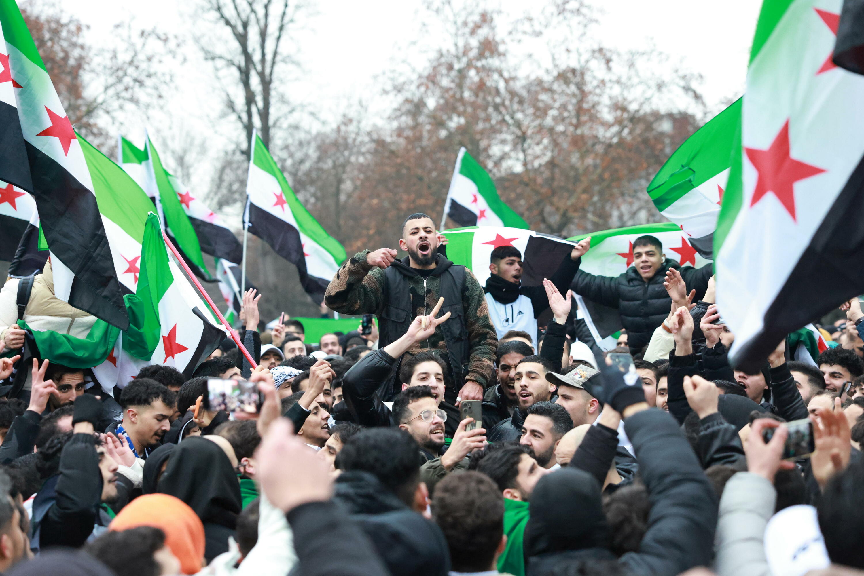 Matxinoek igandean hartu zuten Damasko kontrolpean, eta berehala erori zen gobernua. Egun horretan bertan, Siriako diasporak elkarretaratze jendetsuak egin zituen Europako hiriburu nagusietan, hala nola Berlinen eta Londresen, eta eskuinak agerraldi horietako batzuk baliatu ditu siriar jatorriko migranteen itzulera bultzatzeko. Kasurako, Alemaniarentzat Alternatiba eskuin muturreko taldeko kide Alice Weidelek: «Argi dago 'Siria aske' dioen edonork ez duela erbestean jarraitzeko motiborik».