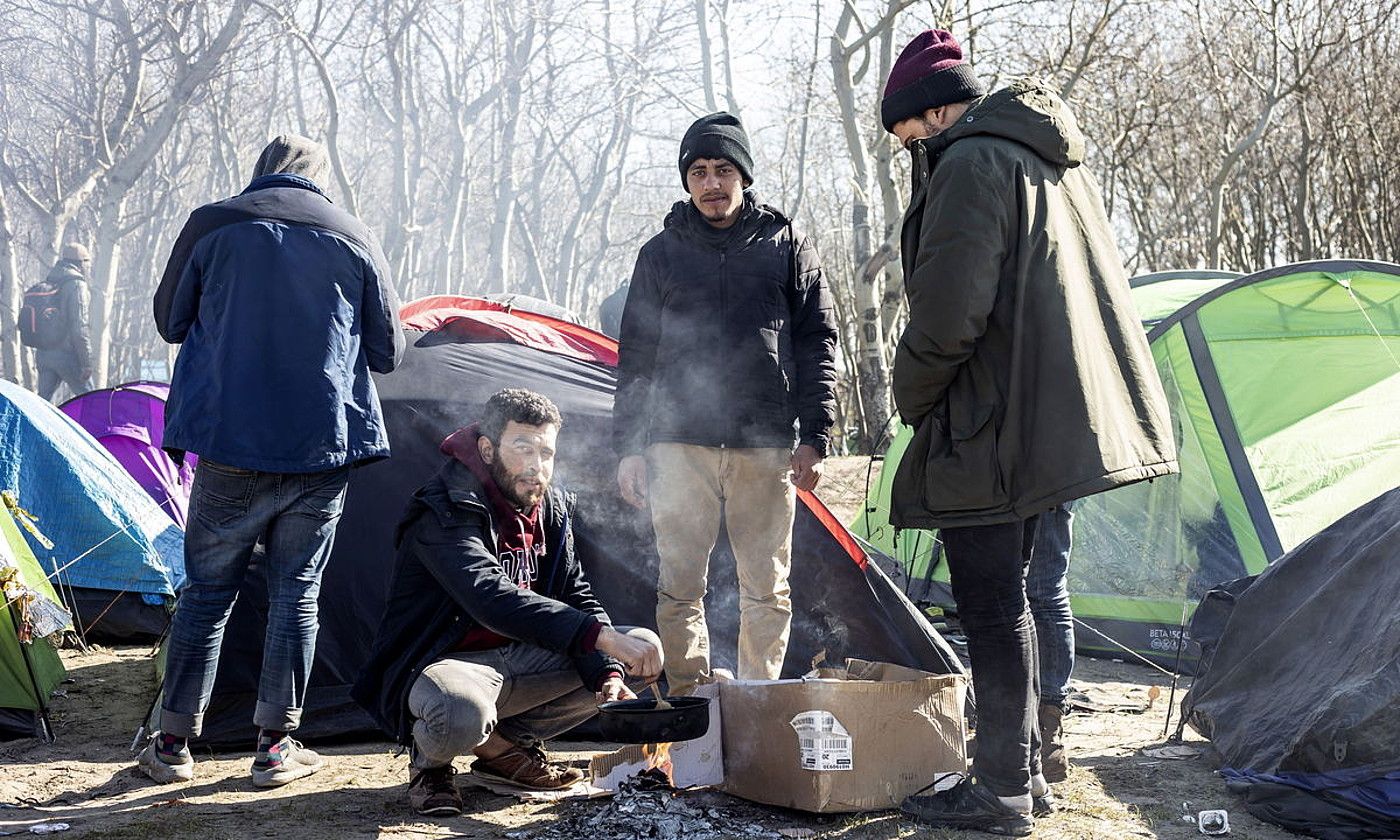 GKEak kaleratutako txosten baten arabera, poliziek «jazarpena eta umiliazioa» darabilte kanpalekuetako migratzaileen aurka. 2.000 bat lagun bizi dira han baldintza oso kaskarretan