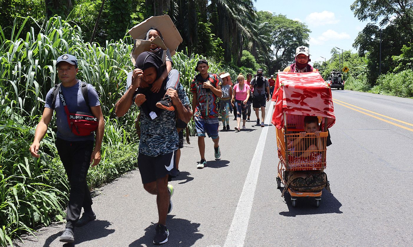 Migratzaileen beste bi karabana abiatu ziren herenegun Tapachulatik, Mexiko eta Guatemala arteko mugatik. 4.300 bat etorkin dira AEBetara karabanan doazenak, eta migratzaileek berek esan diete berri agentziei Huixtlara iristea dela lehen helburua —Chiapas estatuan, Tapachulatik 40 bat kilometrora—, han beren lege estatusa erregularizatzeko prozesua hasteko. Mexikoko Giza Eskubideen Batzorde Nazionalak eskatu du migratzaileentzako giza laguntza bermatzeko. Argazkian, etorkinak Tapachula inguruan.