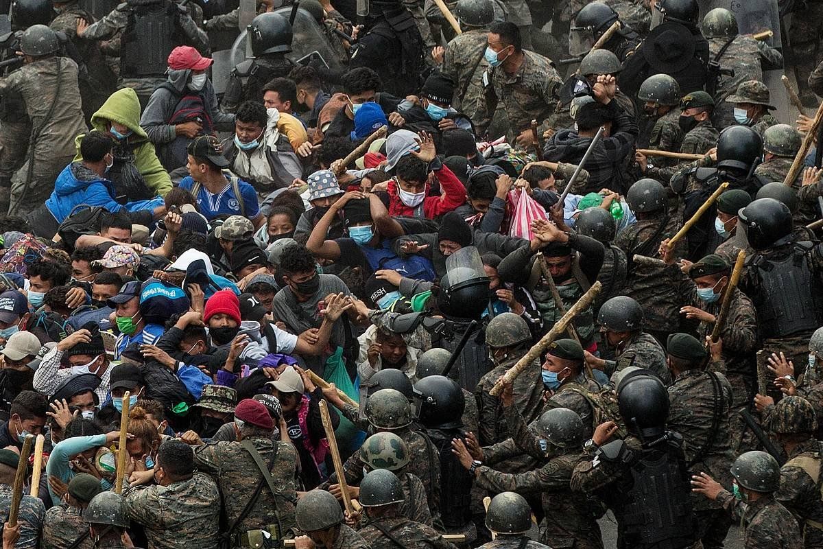 Hondurastik joan den astean abiatu zen eta AEBetara iristea helburu duen giza karabana bortizki eten du Guatemalak. Poliziak eta armadak migratzaileak inguratu zituzten atzo, herrialdearen ekialdeko Chiquimula departamenduan, errepidean oinez zihoazela. Estatuko indarrek bidea moztu zieten, atzera egitera behartu zituzten, eta haien kontra oldartu ziren. Negar gasa jaurti zioten jende oldeari, eta makila kolpez zauritu zituzten hesia gainditzen saiatu zirenak; gaur, berriz, karabana desegin dute. Batzuek inguru malkarreko muinoetan gora egin zuten, Poliziari izkin egin eta Mexikorantz jarraitzeko ahaleginean. Hondurasko Gobernuak polizien eta militarren abusuak ikertzeko eskatu dio Guatemalari.