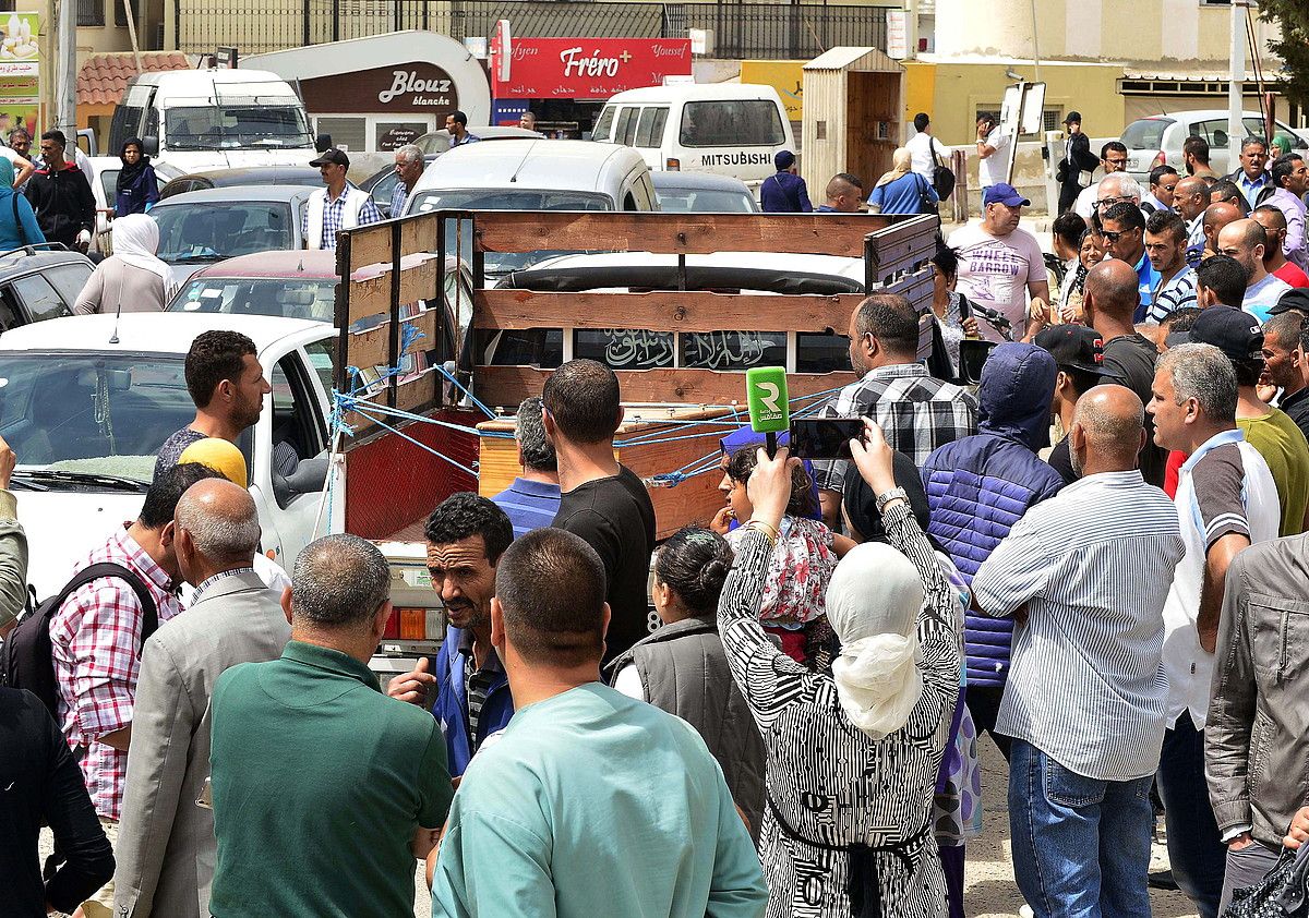 Azken urteotan milaka lagun hil dira Tunisiako kostaldetik hurbil. Irudian, hainbat pertsona Tunisiako gorputegi baten kanpoan, iaz. STR / EFE.