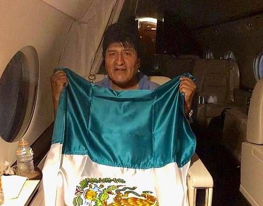Marcelo Ebrard Mexikoko Atzerri ministroak gaur goizaldean baieztatu du Morales hegazkinean zela jada, Mexikora «modu seguruan» bidaia zezan. Mexikoko armadaren hegazkinak hainbat orduko geldialdi bat egin du Paraguain, erregaiz hornitzeko eta Brasildik, Perutik eta Ekuadortik igarotzeko baimenak eskuratzeko. Boliviako presidente ohiak Twitter bidez iragarri du Mexikora bidean dela: