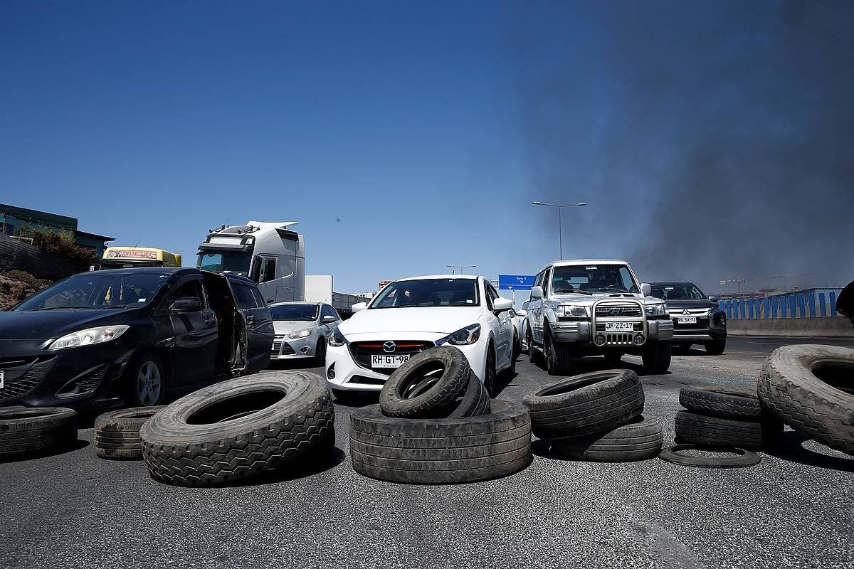 Kamioilariek Txile iparraldean egindako protestaren irudia, iragan larunbatekoa. JOSE CAVIEDES / EFE