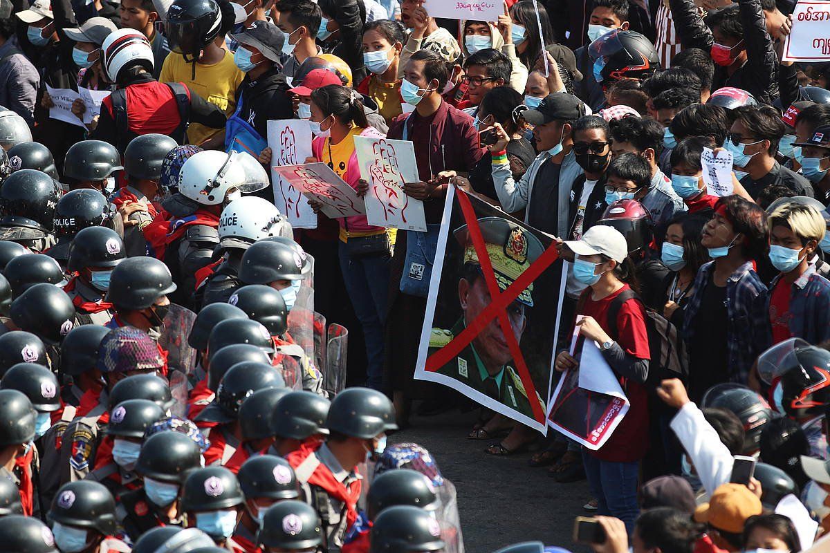 Lehen bi egunetan mobilizazio gutxi izan ziren arren, egunek aurrera egin ahala, geroz eta lagun gehiago atera dira kalera protesta egitera, nahiz eta herenegun juntak gerra-legea ezarri zuen. Aung San Suu Kyiren alderdi NLD Demokraziarako Liga Nazionalaren arabera, Poliziak gutxienez zazpi zibil zauritu zituen balekin, gomazko pilotekin eta ur kanoiekin tiro egitean. Horietako bi larri daude ospitalean.