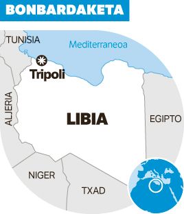 Gutxienez 44 migratzaile hil eta 130 zauritu zituzten atxilotze gune baten aurka jo zuen aire eraso batean, Tripolin, Libiako hiriburuan, atzo goizean, NBE Nazio Batuen Erakundearen datuen arabera. Duela hiru hilabete, Khalifa Haftar buru duen Libiako Armada Nazionalak Tripoli hartzeko erasoaldia abiatu zuen, eta ordutik bonbardaketa batek izan dituen ondoriorik larrienak izan zituen atzokoak. NBEk babesten duen Tripoliko gobernuak Libiako Armada Nazionalari egotzi dio erasoa, eta hark, gobernuari, bueltan. Erasotutako migratzaileentzako atxilotze guneak 600 errefuxiatu baino gehiago ditu; Saharaz hegoaldeko Afrikatik Europara iritsi nahi dute.