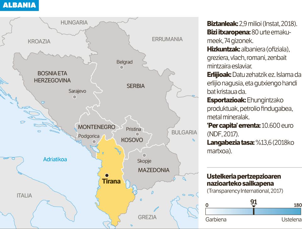 «Albaniar gehienek Europa mitiko baten irudi idealizatu bat dute», azaldu dio BERRIAri Afrim Krasniqi ISP Albaniako Ikerketa Politikorako Zentroko zuzendariak. «Albaniar gehienak ez daude informatuta EBrekin bat egitearen kostuen eta abantailen inguruan. Ez daude horri buruz eztabaidatzeko tokian, uste zabaldua baita Europa dela bide bakarra, etorkizun posible bakarra». Krasniqiren arabera, EBk Albaniako herritarren artean duen ospea «Balkanetako herrialdeen artean dagoen handienetakoa» da. «Gure alderdi politiko bakar batek ere ez du deus errateko EBren kontra. Ezta muturrekoenek, nazionalistek, gutxiengoen alderdiek edo populistek ere». ISPko zuzendariak dioenez, albaniar gehienek uste dute «Europarekin berriz bat egiten ari direla», Otomandar Inperioak Albania inbaditu ondoren (XV. mendean) bide «natural» hori galdu zutela iritzita.